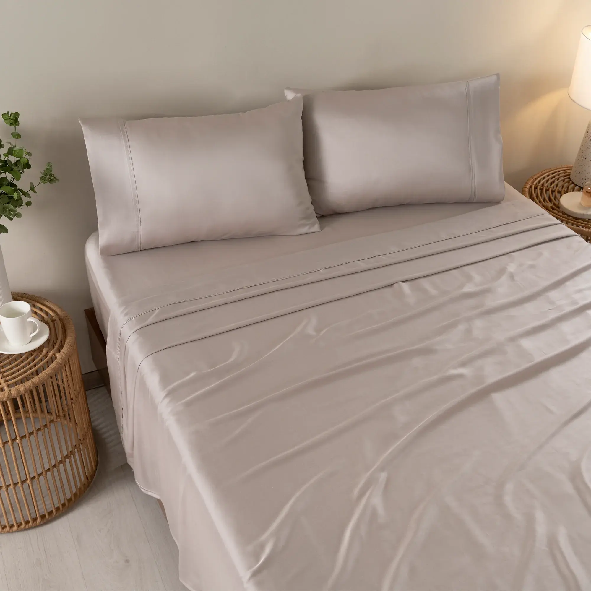 Conjuntos de sábanas en tonos neutros en un elegante empaque. La personificación de la comodidad y estilo.