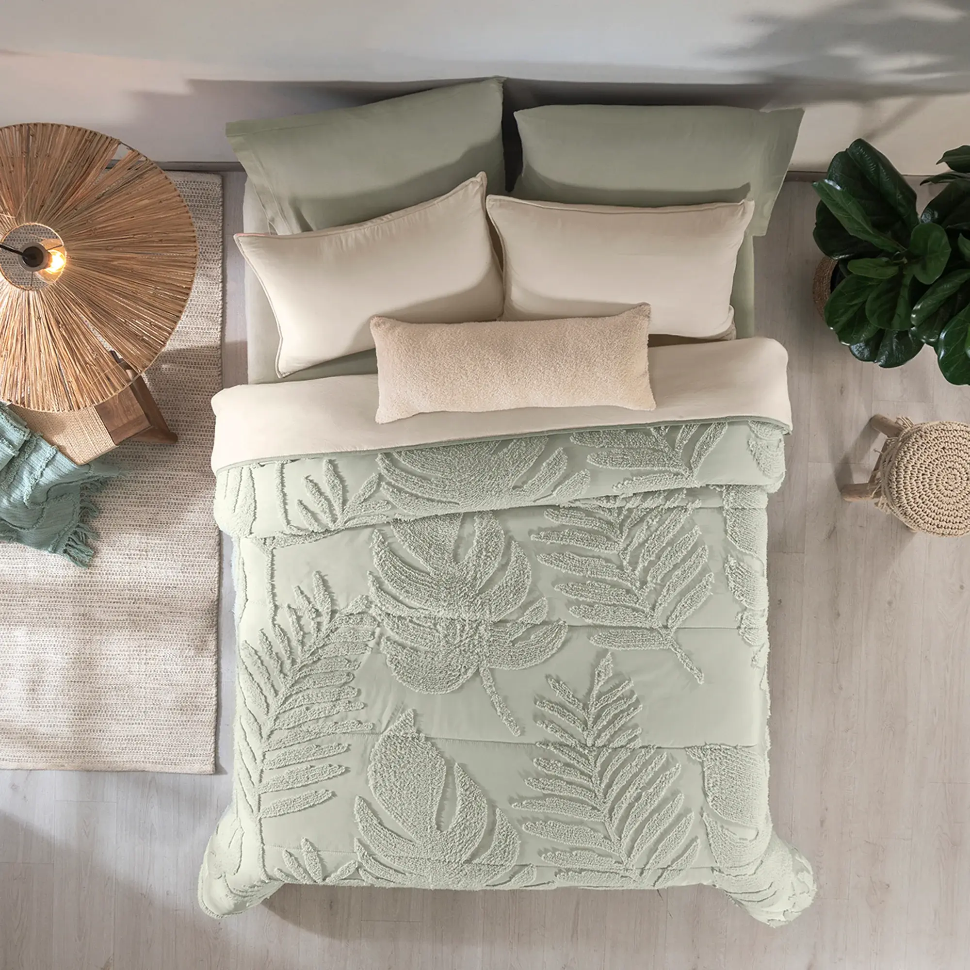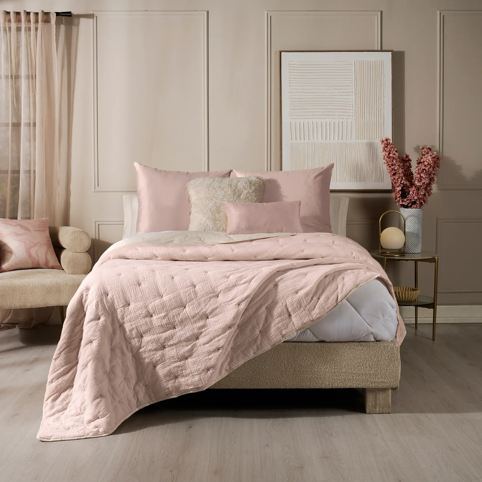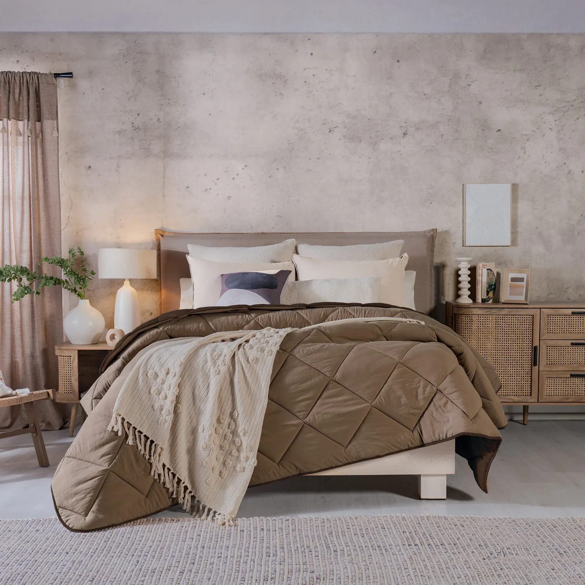 Edredones en tonos suaves y texturas acogedoras para transformar tu dormitorio en un lugar lleno de paz.